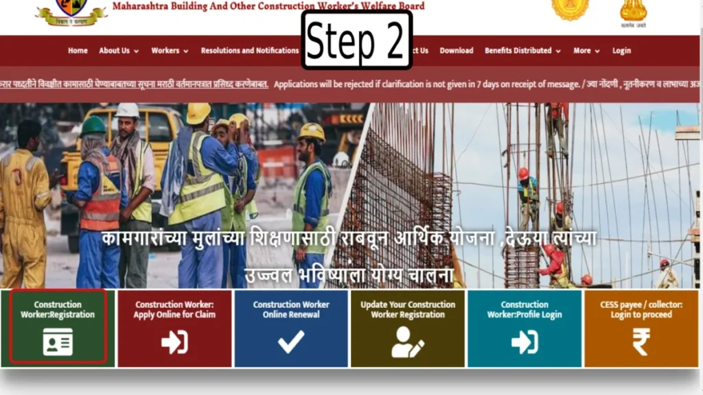 - वेबसाइट के होमपेज पर “Construction Worker: Registration” विकल्प चुनें।